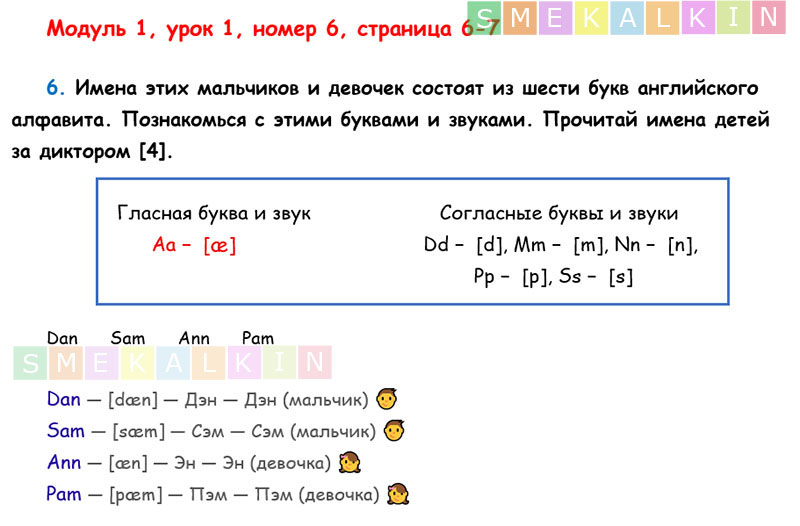 ГДЗ к 6 номеру 1 урока 1 модуля на 6-7 страницах учебника по Английскому языку Афанасьевой, Барановой, Михеевой для 2 класса 1 часть
