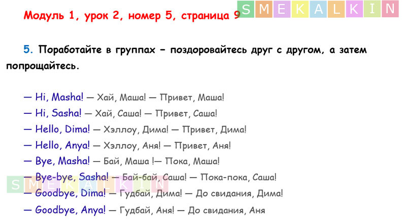 ГДЗ к 5 номеру 2 урока 1 модуля на 9 странице учебника по Английскому языку Афанасьевой, Барановой, Михеевой для 2 класса 1 часть