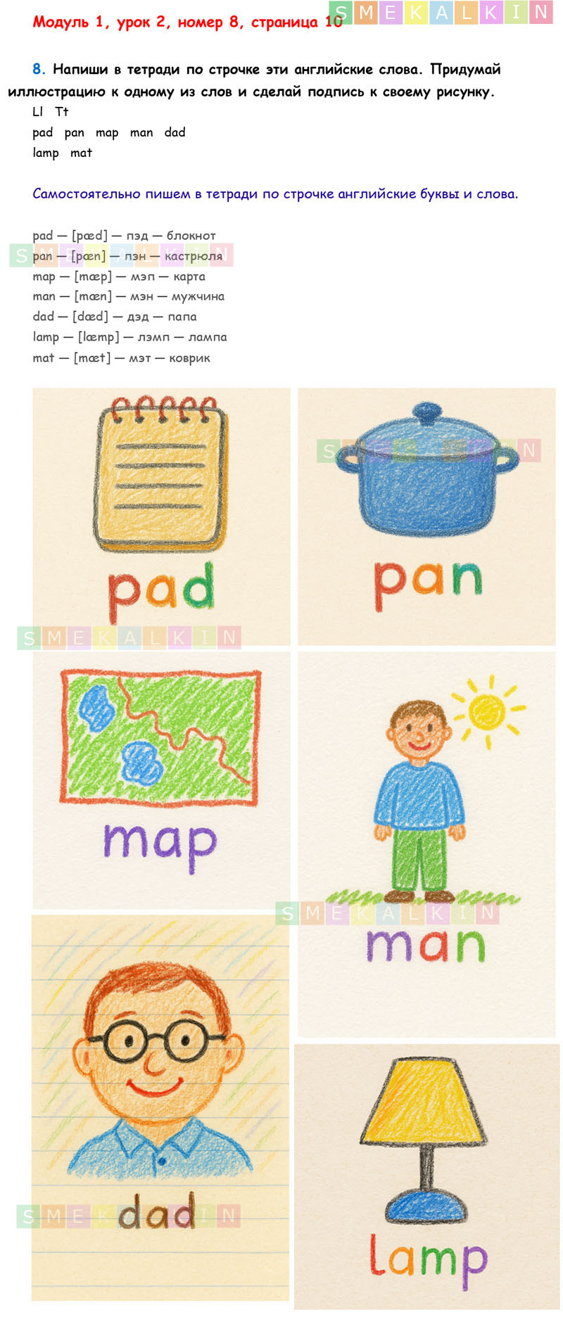 ГДЗ к 8 номеру 2 урока 1 модуля на 10 странице учебника по Английскому языку Афанасьевой, Барановой, Михеевой для 2 класса 1 часть