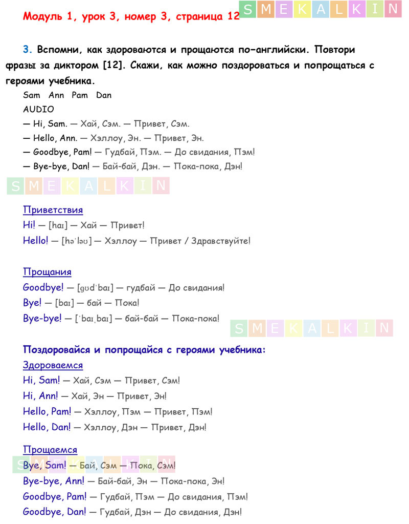 ГДЗ к 3 номеру 3 урока 1 модуля на 12 странице учебника по Английскому языку Афанасьевой, Барановой, Михеевой для 2 класса 1 часть