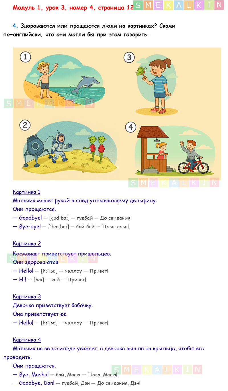 ГДЗ к 4 номеру 3 урока 1 модуля на 12 странице учебника по Английскому языку Афанасьевой, Барановой, Михеевой для 2 класса 1 часть