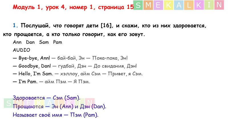 ГДЗ к 1 номеру 4 урока 1 модуля на 15 странице учебника по Английскому языку Афанасьевой, Барановой, Михеевой для 2 класса 1 часть