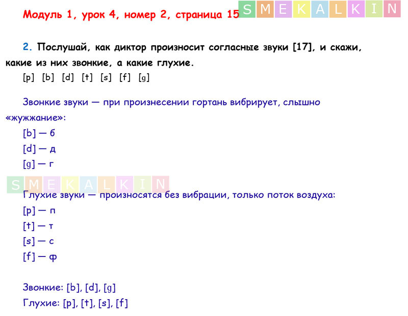 ГДЗ ко 2 номеру 4 урока 1 модуля на 15 странице учебника по Английскому языку Афанасьевой, Барановой, Михеевой для 2 класса 1 часть