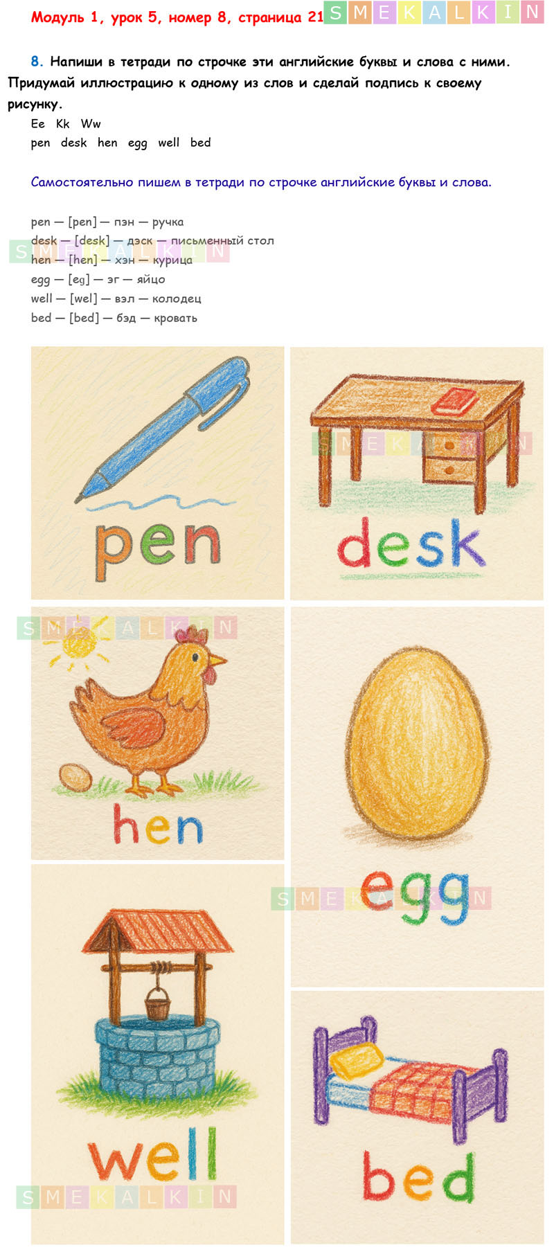 ГДЗ к 8 номеру 5 урока 1 модуля на 21 странице учебника по Английскому языку Афанасьевой, Барановой, Михеевой для 2 класса 1 часть