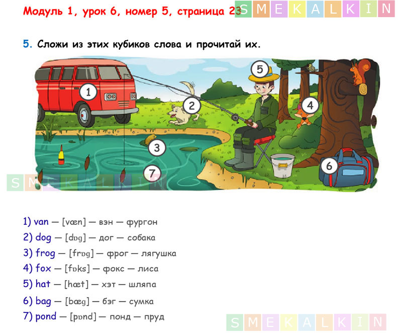 ГДЗ к 5 номеру 6 урока 1 модуля на 23 странице учебника по Английскому языку Афанасьевой, Барановой, Михеевой для 2 класса 1 часть