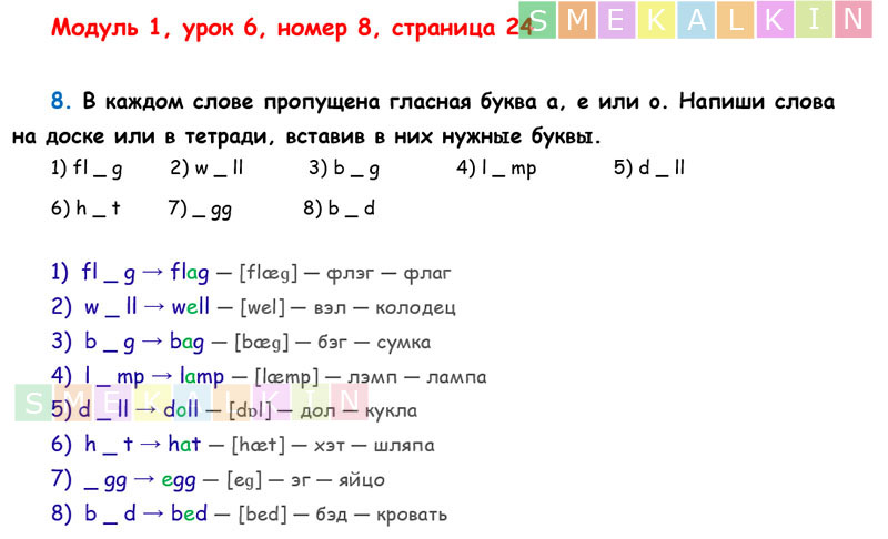 ГДЗ к 8 номеру 6 урока 1 модуля на 24 странице учебника по Английскому языку Афанасьевой, Барановой, Михеевой для 2 класса 1 часть