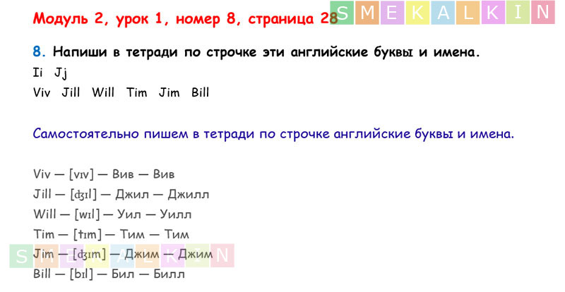 ГДЗ к 8 номеру 1 урока 2 модуля на 28 странице учебника по Английскому языку Афанасьевой, Барановой, Михеевой для 2 класса 1 часть