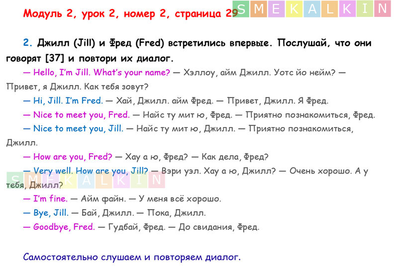 ГДЗ ко 2 номеру 2 урока 2 модуля на 29 странице учебника по Английскому языку Афанасьевой, Барановой, Михеевой для 2 класса 1 часть