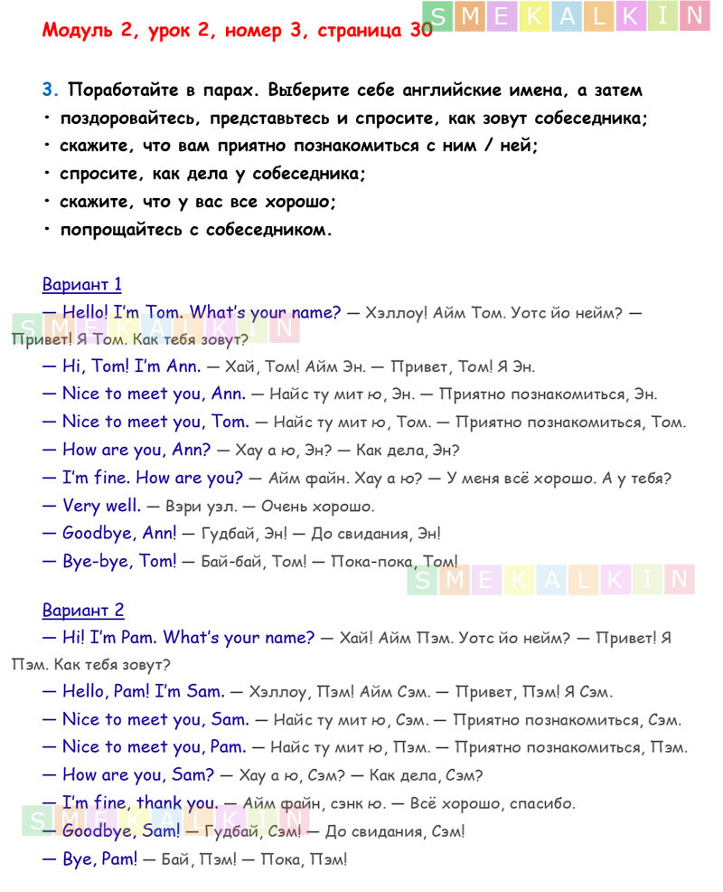 ГДЗ к 3 номеру 2 урока2 модуля на 30 странице учебника по Английскому языку Афанасьевой, Барановой, Михеевой для 2 класса 1 часть