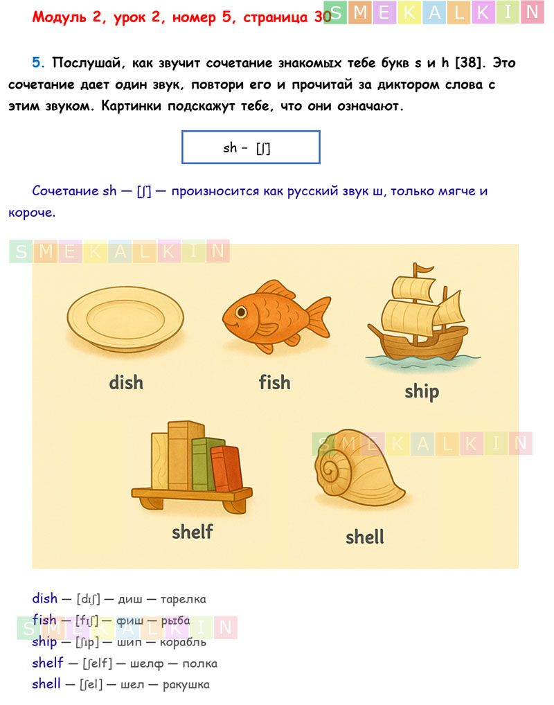 ГДЗ к 5 номеру 2 урока 2 модуля на 30 странице учебника по Английскому языку Афанасьевой, Барановой, Михеевой для 2 класса 1 часть