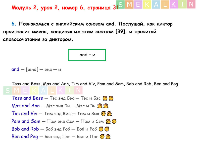 ГДЗ к 6 номеру 2 урока 2 модуля на 31 странице учебника по Английскому языку Афанасьевой, Барановой, Михеевой для 2 класса 1 часть