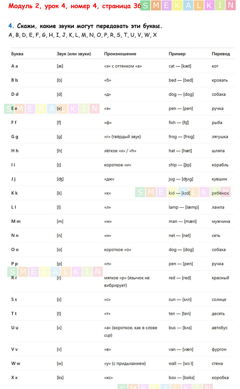 ГДЗ к 4 номеру 4 урока 2 модуля на 36 странице учебника по Английскому языку Афанасьевой, Барановой, Михеевой для 2 класса 1 часть