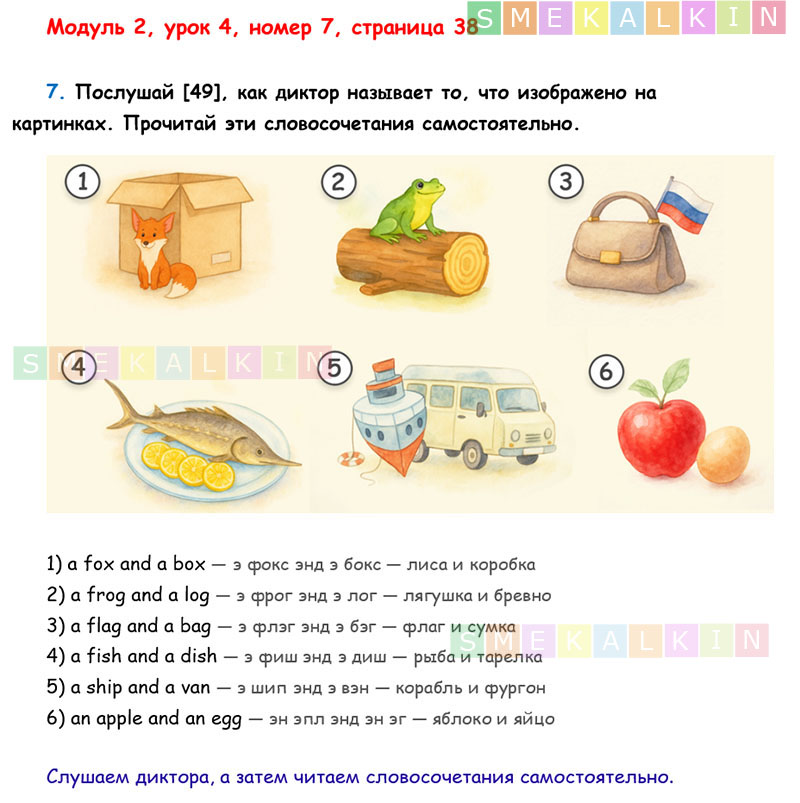 ГДЗ к 7 номеру 4 урока 2 модуля на 38 странице учебника по Английскому языку Афанасьевой, Барановой, Михеевой для 2 класса 1 часть