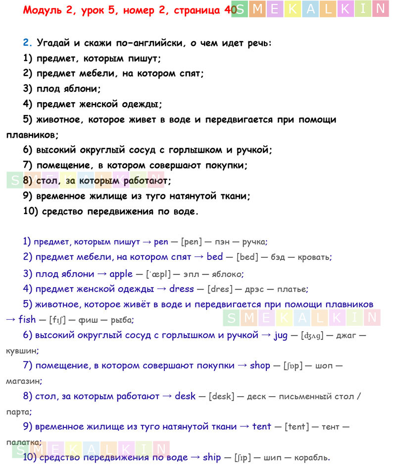 ГДЗ ко 2 номеру 5 урока 2 модуля на 40 странице учебника по Английскому языку Афанасьевой, Барановой, Михеевой для 2 класса 1 часть