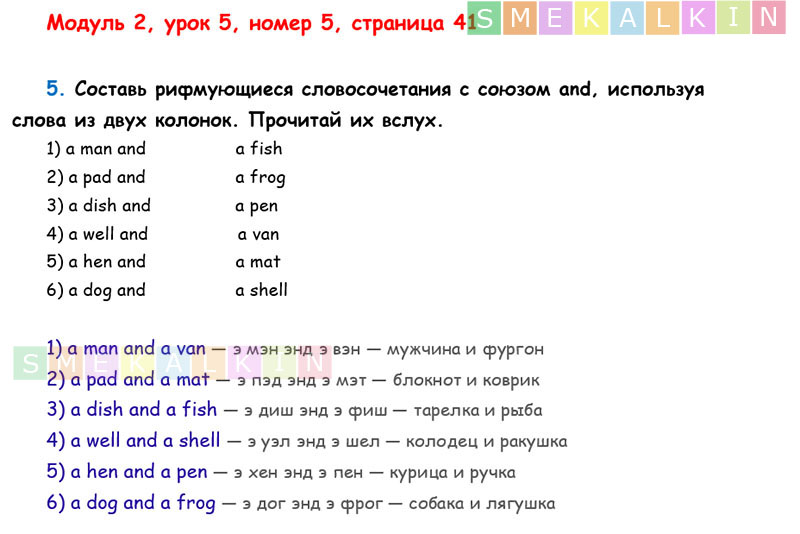 ГДЗ к 5 номеру 5 урока 2 модуля на 41 странице учебника по Английскому языку Афанасьевой, Барановой, Михеевой для 2 класса 1 часть