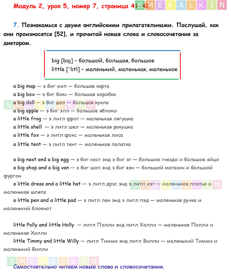 ГДЗ к 7 номеру 5 урока 2 модуля на 41-42 страницах учебника по Английскому языку Афанасьевой, Барановой, Михеевой для 2 класса 1 часть