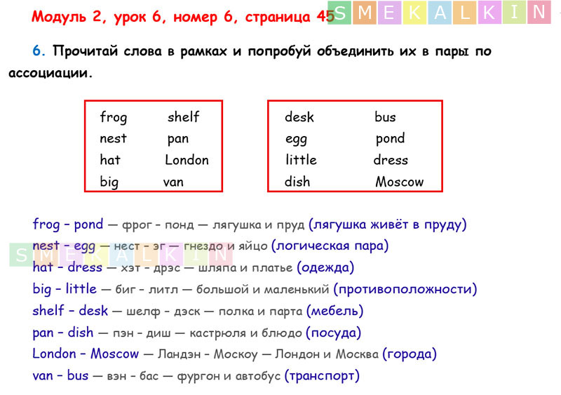 ГДЗ к 6 номеру 6 урока 2 модуля на 45 странице учебника по Английскому языку Афанасьевой, Барановой, Михеевой для 2 класса 1 часть