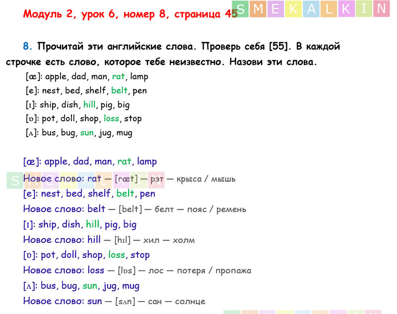 ГДЗ к 8 номеру 6 урока 2 модуля на 45 странице учебника по Английскому языку Афанасьевой, Барановой, Михеевой для 2 класса 1 часть