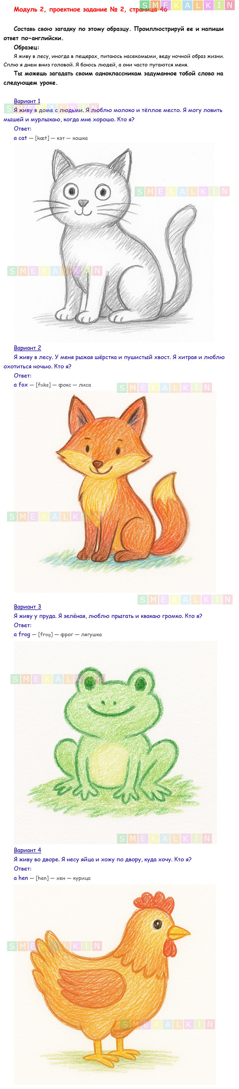 ГДЗ к проектному заданию №2 модуля 2 на 46 странице учебника по Английскому языку Афанасьевой, Барановой, Михеевой для 2 класса 1 часть