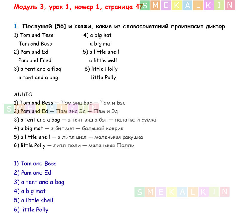 ГДЗ к 1 номеру 1 урока 3 модуля на 47 странице учебника по Английскому языку Афанасьевой, Барановой, Михеевой для 2 класса 1 часть