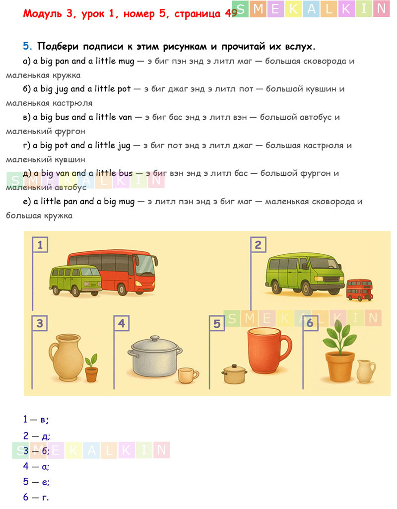 ГДЗ к 5 номеру 1 урока 3 модуля на 49 странице учебника по Английскому языку Афанасьевой, Барановой, Михеевой для 2 класса 1 часть