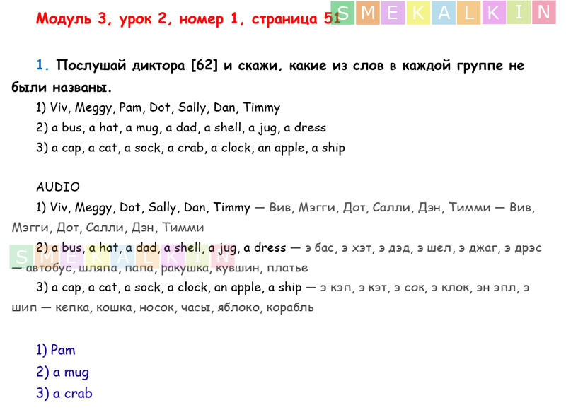ГДЗ к 1 номеру 2 урока 3 модуля на 51 странице учебника по Английскому языку Афанасьевой, Барановой, Михеевой для 2 класса 1 часть