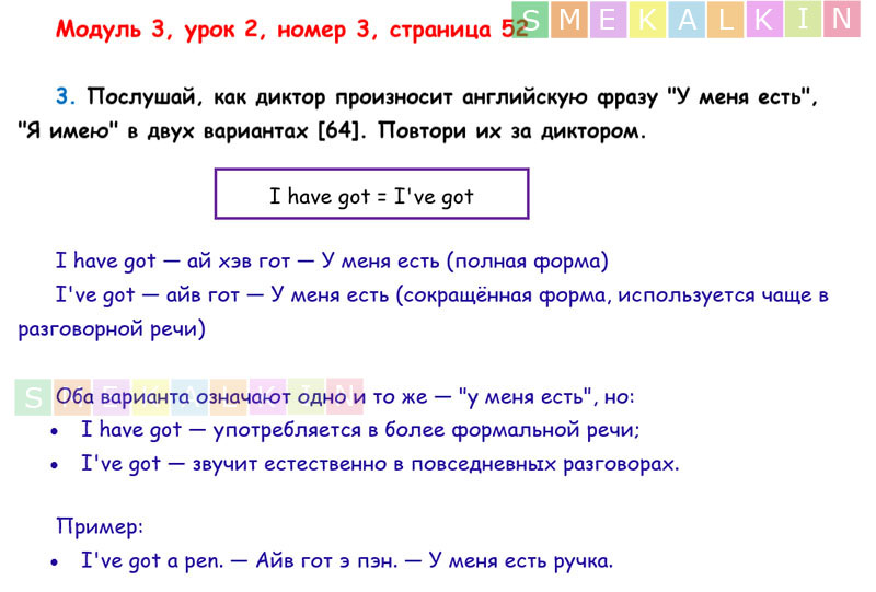 ГДЗ к 3 номеру 2 урока 3 модуля на 52 странице учебника по Английскому языку Афанасьевой, Барановой, Михеевой для 2 класса 1 часть