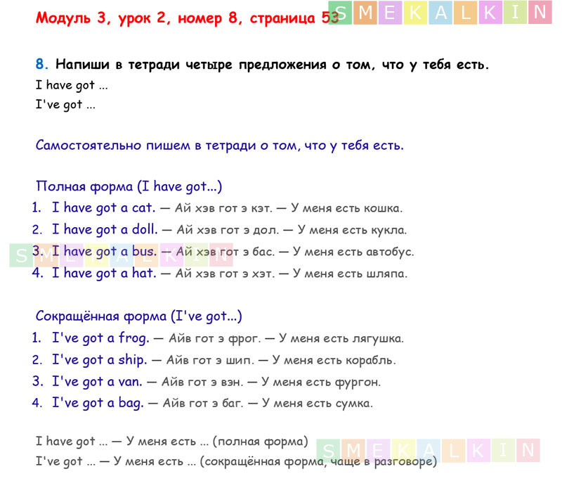 ГДЗ к 8 номеру 2 урока 3 модуля на 53 странице учебника по Английскому языку Афанасьевой, Барановой, Михеевой для 2 класса 1 часть