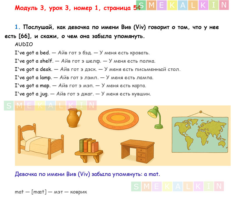 ГДЗ к 1 номеру 3 урока 3 модуля на 54 странице учебника по Английскому языку Афанасьевой, Барановой, Михеевой для 2 класса 1 часть