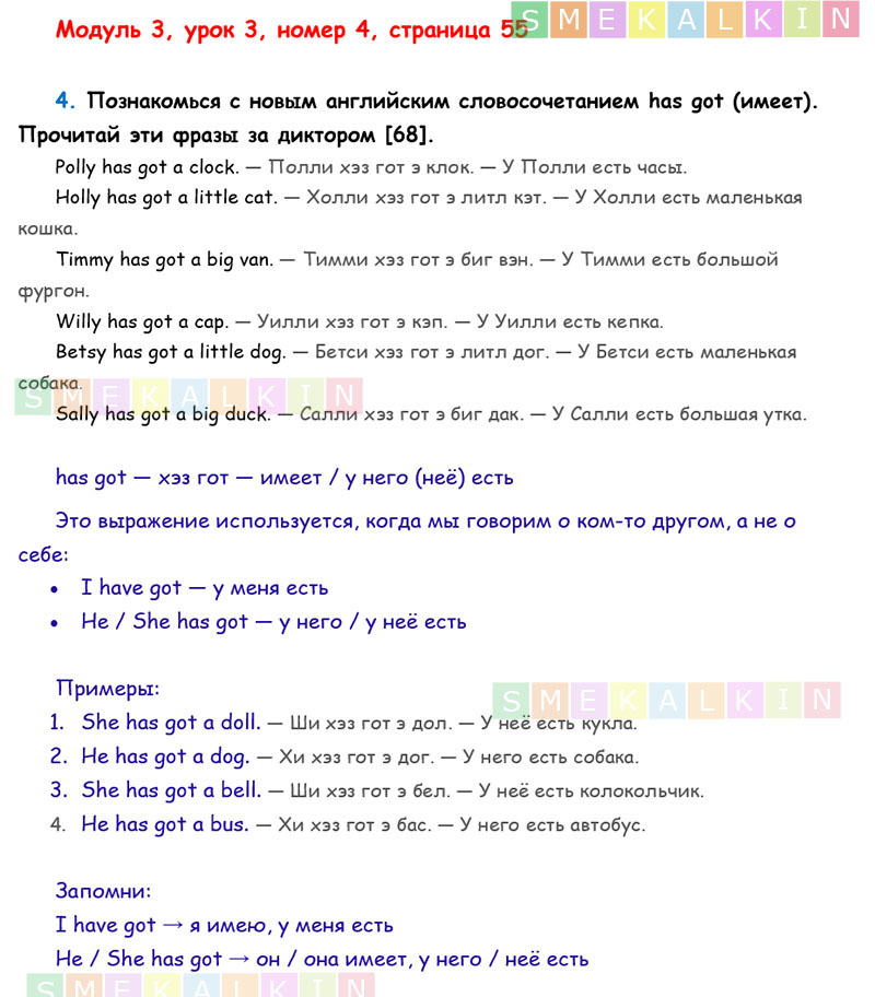ГДЗ к 4 номеру 3 урока 3 модуля на 55 странице учебника по Английскому языку Афанасьевой, Барановой, Михеевой для 2 класса 1 часть