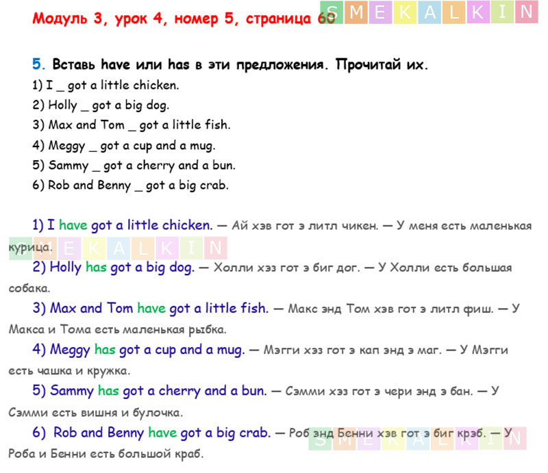 ГДЗ к 5 номеру 4 урока 3 модуля на 60 странице учебника по Английскому языку Афанасьевой, Барановой, Михеевой для 2 класса 1 часть