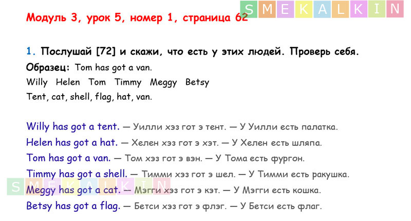 ГДЗ к 1 номеру 5 урока 3 модуля на 62 странице учебника по Английскому языку Афанасьевой, Барановой, Михеевой для 2 класса 1 часть