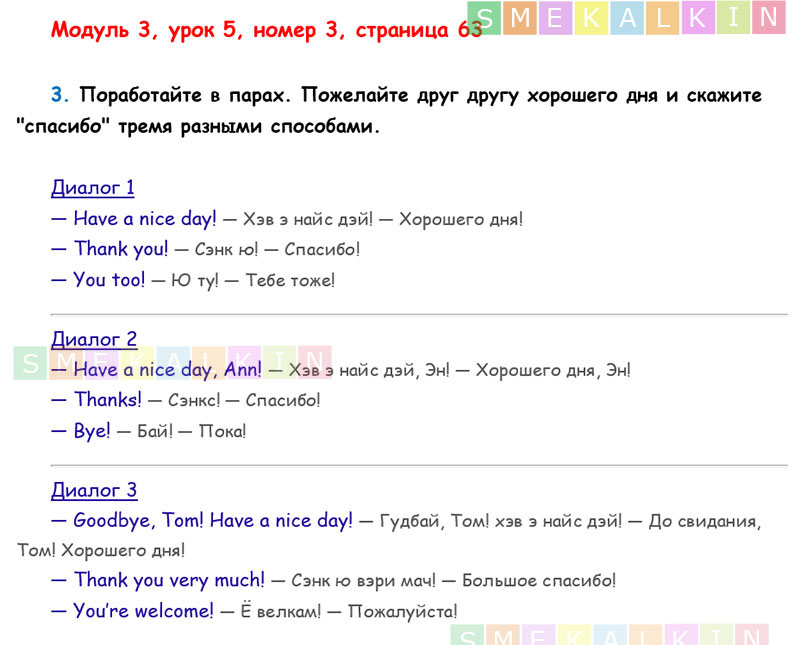 ГДЗ к 3 номеру 5 урока 3 модуля на 63 странице учебника по Английскому языку Афанасьевой, Барановой, Михеевой для 2 класса 1 часть