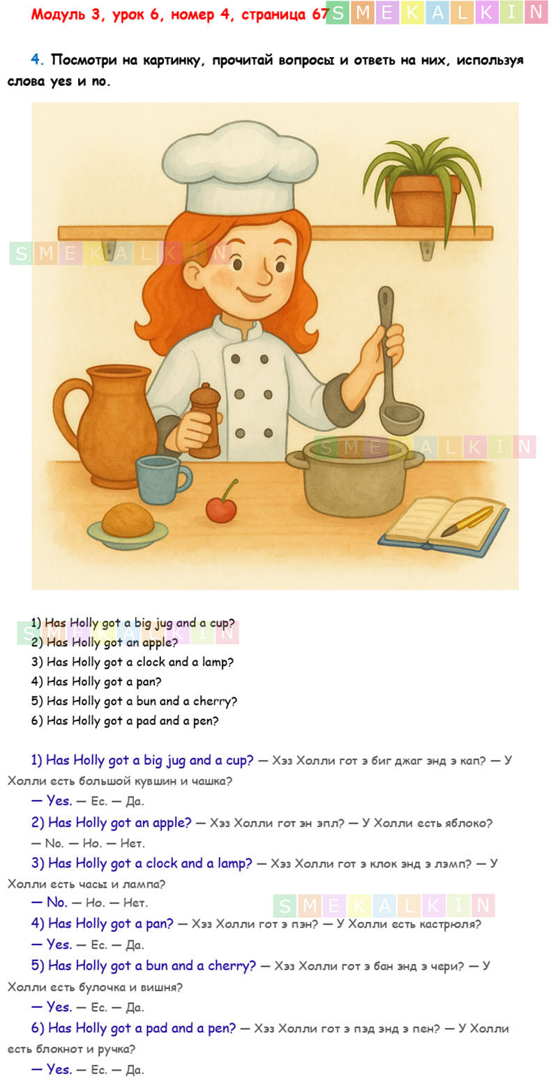 ГДЗ к 4 номеру 6 урока 3 модуля на 67 странице учебника по Английскому языку Афанасьевой, Барановой, Михеевой для 2 класса 1 часть