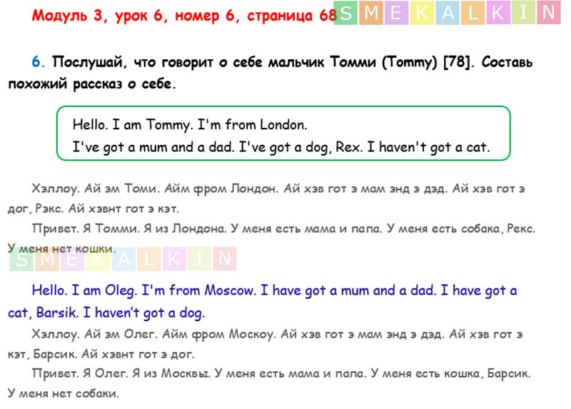 ГДЗ к 6 номеру 6 урока 3 модуля на 68 странице учебника по Английскому языку Афанасьевой, Барановой, Михеевой для 2 класса 1 часть