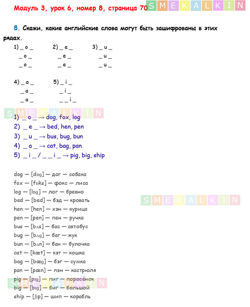 ГДЗ к 8 номеру 6 урока 3 модуля на 70 странице учебника по Английскому языку Афанасьевой, Барановой, Михеевой для 2 класса 1 часть