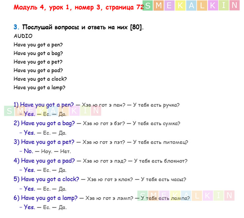 ГДЗ к 3 номеру 1 урока 4 модуля на 72 странице учебника по Английскому языку Афанасьевой, Барановой, Михеевой для 2 класса 1 часть