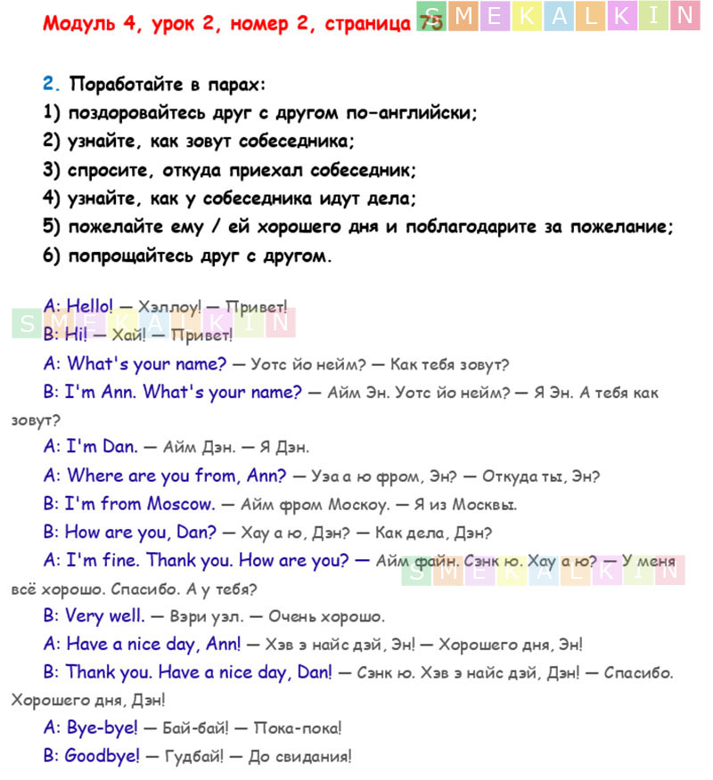 ГДЗ ко 2 номеру 2 урока 4 модуля на 75 странице учебника по Английскому языку Афанасьевой, Барановой, Михеевой для 2 класса 1 часть