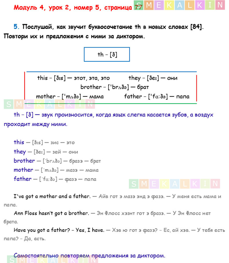 ГДЗ к 5 номеру 2 урока 4 модуля на 77 странице учебника по Английскому языку Афанасьевой, Барановой, Михеевой для 2 класса 1 часть