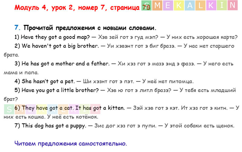 ГДЗ к 7 номеру 2 урока 4 модуля на 78 странице учебника по Английскому языку Афанасьевой, Барановой, Михеевой для 2 класса 1 часть