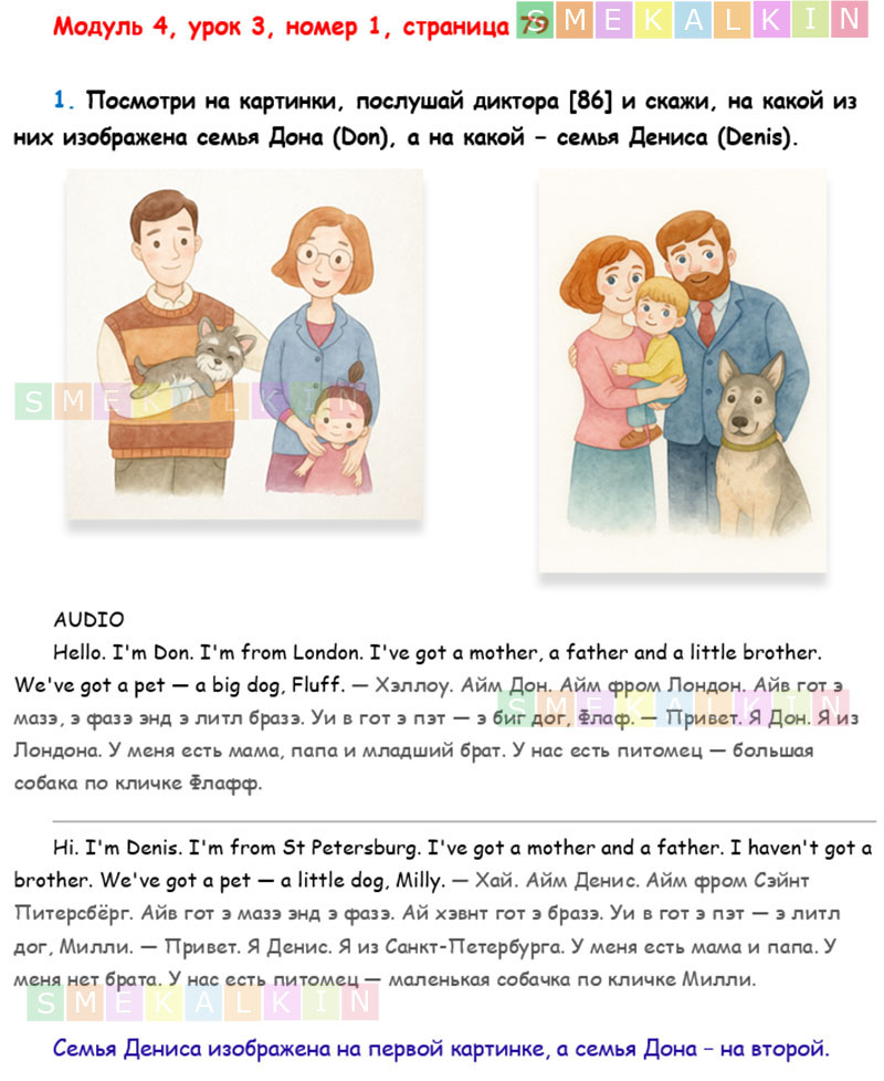 ГДЗ к 1 номеру 3 урока 4 модуля на 79 странице учебника по Английскому языку Афанасьевой, Барановой, Михеевой для 2 класса 1 часть