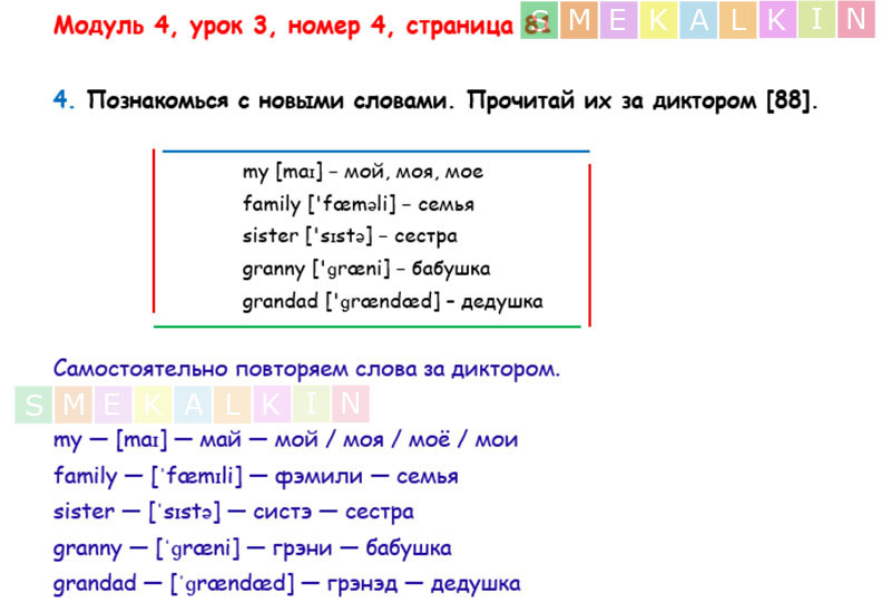 ГДЗ к 4 номеру 3 урока 4 модуля на 81 странице учебника по Английскому языку Афанасьевой, Барановой, Михеевой для 2 класса 1 часть
