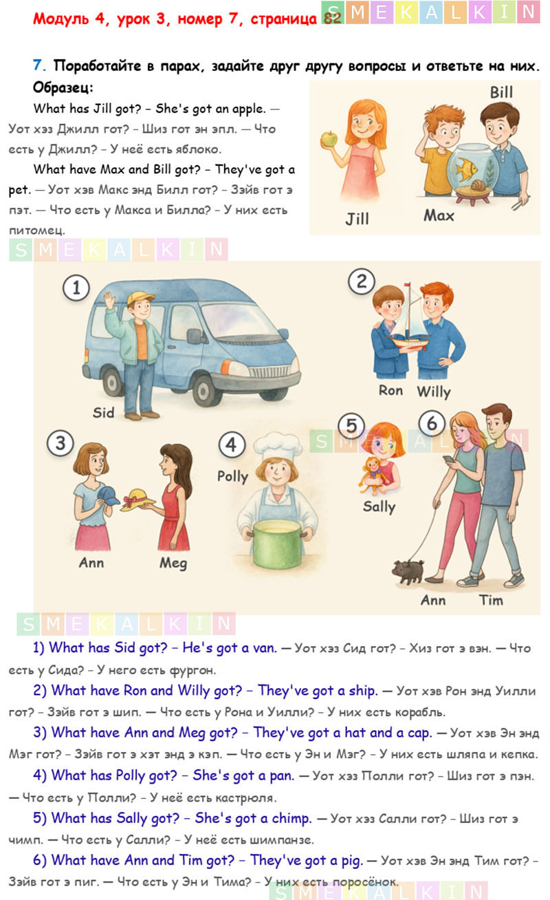 ГДЗ к 7 номеру 3 урока 4 модуля на 82 странице учебника по Английскому языку Афанасьевой, Барановой, Михеевой для 2 класса 1 часть