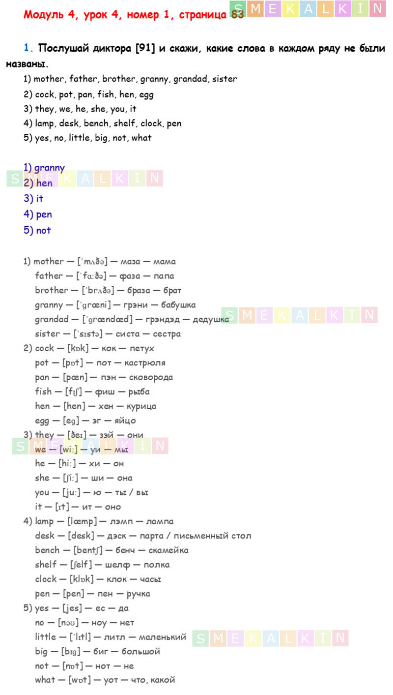 ГДЗ к 1 номеру 4 урока 4 модуля на 83 странице учебника по Английскому языку Афанасьевой, Барановой, Михеевой для 2 класса 1 часть