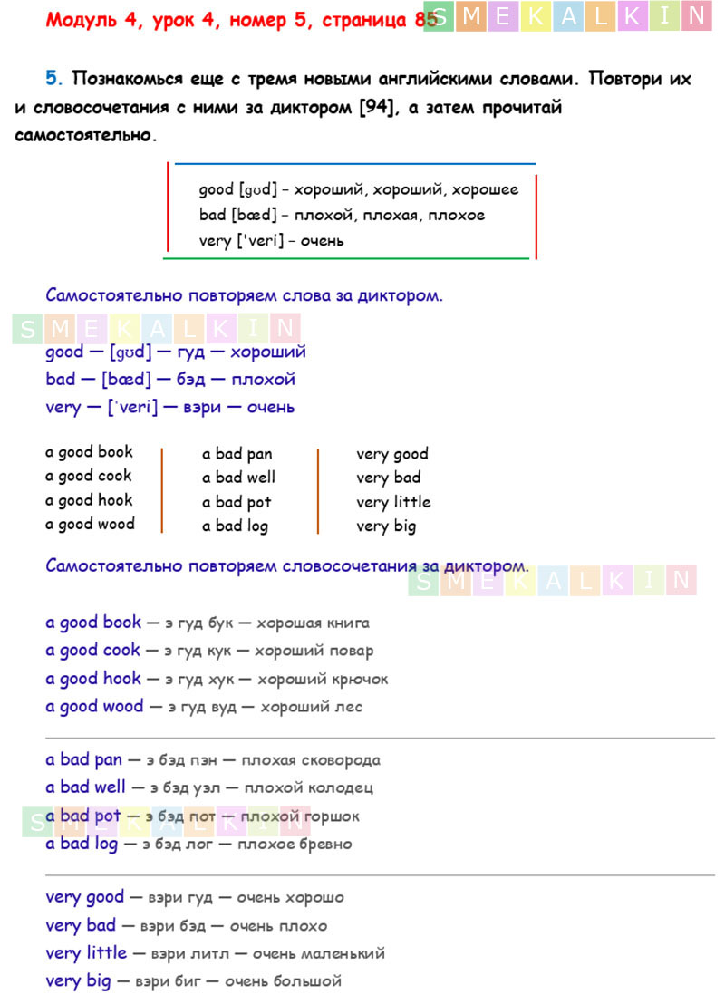 ГДЗ к 5 номеру 4 урока 4 модуля на 85 странице учебника по Английскому языку Афанасьевой, Барановой, Михеевой для 2 класса 1 часть