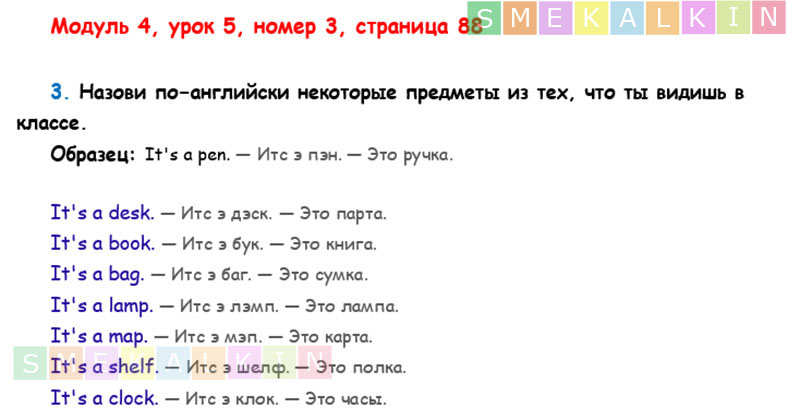 ГДЗ к 3 номеру 5 урока 4 модуля на 88 странице учебника по Английскому языку Афанасьевой, Барановой, Михеевой для 2 класса 1 часть