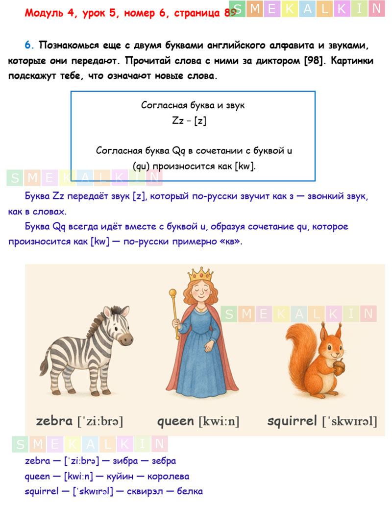 ГДЗ к 6 номеру 5 урока 4 модуля на 89 странице учебника по Английскому языку Афанасьевой, Барановой, Михеевой для 2 класса 1 часть