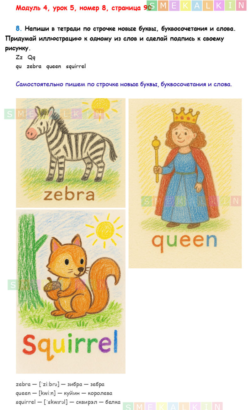 ГДЗ к 8 номеру 5 урока 4 модуля на 90 странице учебника по Английскому языку Афанасьевой, Барановой, Михеевой для 2 класса 1 часть