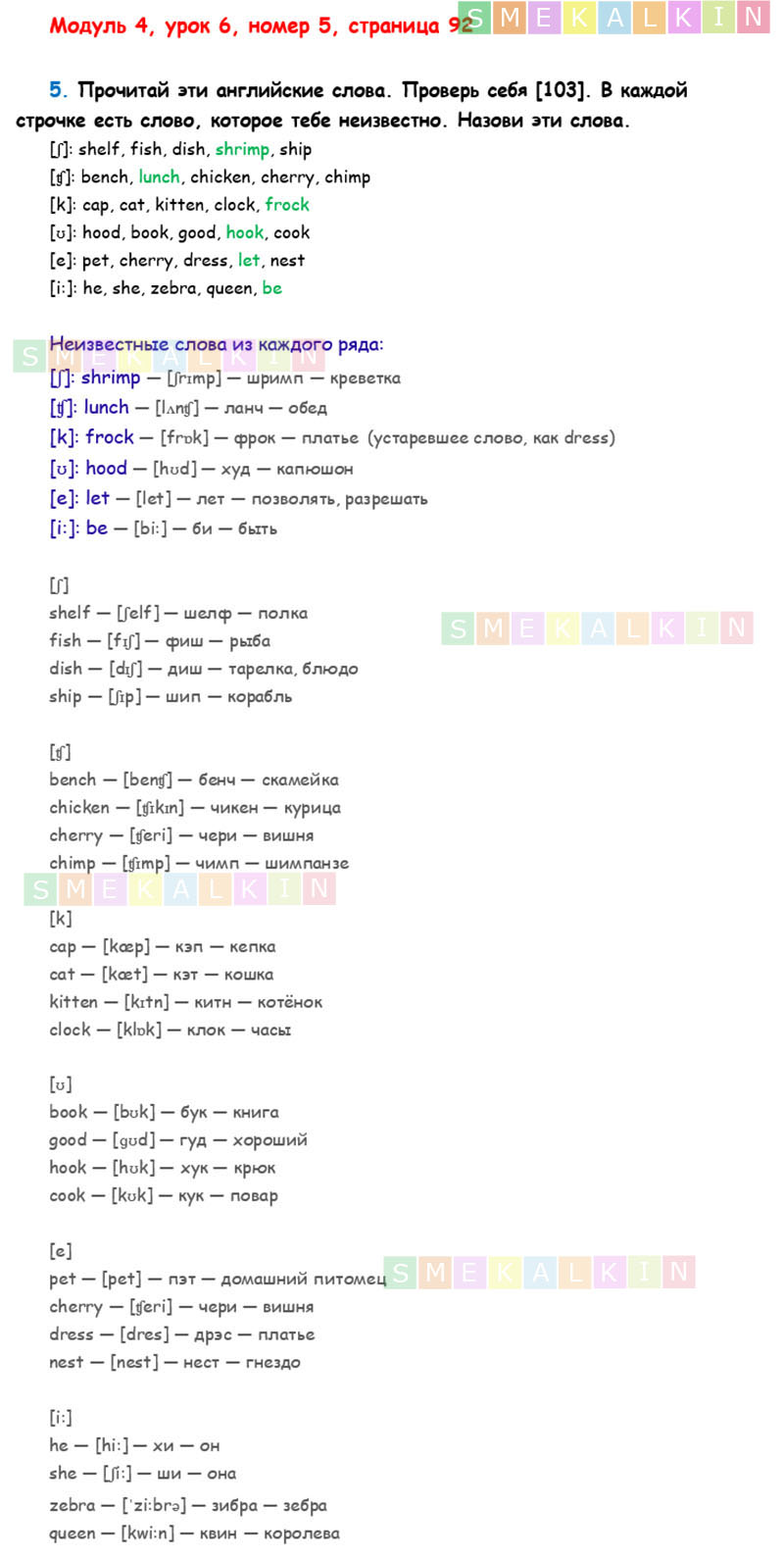 ГДЗ к 5 номеру 6 урока 4 модуля на 92 странице учебника по Английскому языку Афанасьевой, Барановой, Михеевой для 2 класса 1 часть
