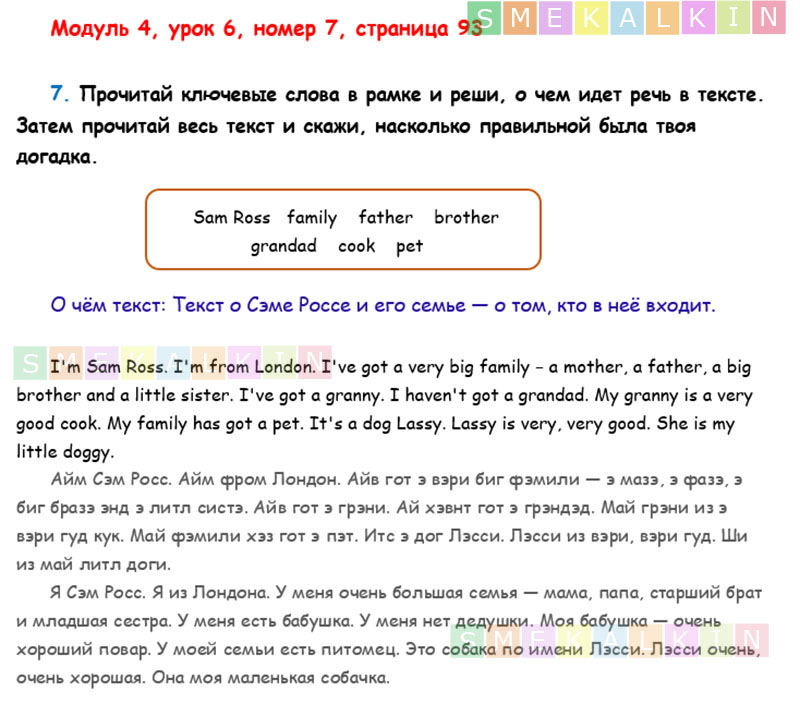 ГДЗ к 7 номеру 6 урока 4 модуля на 93 странице учебника по Английскому языку Афанасьевой, Барановой, Михеевой для 2 класса 1 часть
